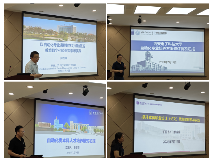 教学研讨环节由陕西省自动化学会教育普及委员会秘书长赵建文教授主持。会议邀请了长安大学电子与控制工程公司经理闫茂德教授、西安电子科技大学机电工程公司副经理陈晓龙教授、西安邮电大学威廉希尔williamhill潘志刚副教授、威廉希尔williamhill副经理季瑞瑞副教授围绕自动化类专业建设、培养方案修订、课程建设、实践环节创新等内容作精彩报告。与会专家进行了深入的研讨,就自动化类专业教改教研、课程设置和实践经验展开了热烈交流和讨论。