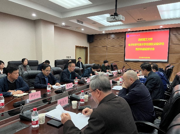 电子科学与技术学科带头人杨媛教授从学位点基本情况、人才培养、科学研究、团队建设、条件保障等方面,向评估专家组汇报了学位点的建设情况。
