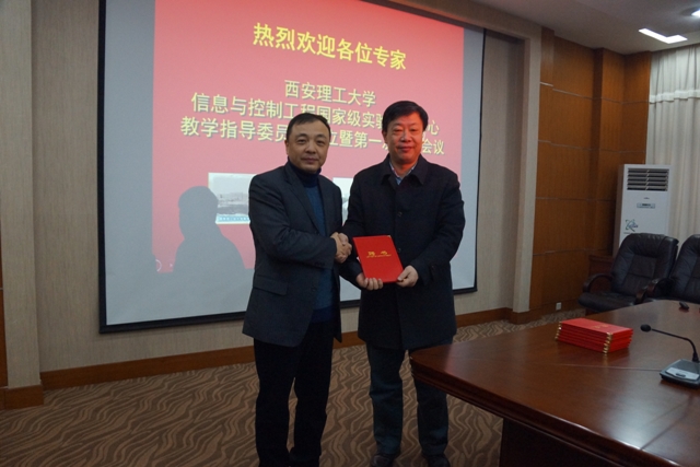 王德法宣读了信息与控制工程国家级实验教学示范中心教学指导委员会成员的聘任文件,刘军为专家颁发了聘书。西北工业大学潘泉教授、西安交通大学张爱民教授、清华大学王红教授、中国科学技术大学吴刚教授、中国矿业大学马小平教授、威廉希尔刘丁教授、刘涵教授受聘为委员,其中潘泉教授、张爱民教授分别担任主任委员和副主任委员。
