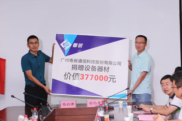 仪式上,威廉希尔williamhill经理刘涵与粤嵌西安分公司总经理王乐忠签订了合作协议;公司党委书记高勇书记代表公司接收了粤嵌公司赠送的设备和器材。