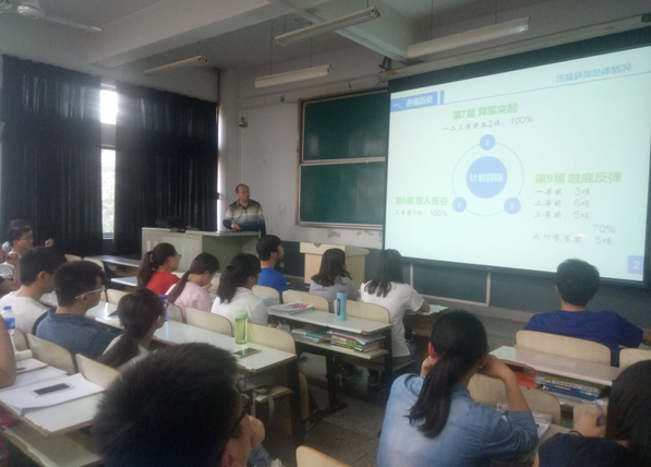 段教授经过简单的自我介绍后,从公司往年的参赛历史讲起,突出强调了公司在往年参赛中的表现。并指出公司目前呈现出参赛队伍增多,获奖率增大,参赛选手年轻化(趋向于大一大二)等良好态势。接下来,段教授讲解参赛背景,出题范围及相关事项,同时提醒大家在组队方面的技巧和配合。很快就进入到经验分享阶段,首先,马文涛老师分享自己的一些经验,同时还邀请了往年电工杯获奖者――范楠,李浩给大家分享经验。马老师着重讲解电工数学建模竞赛常用的方法,着重讲解了10个常用方法,同时举例说明,理解起来更加方便。并向大家推荐了Lindo、Lingo相关软件,让大家提前熟悉使用。接着对近年竞赛题目分析,让大家先感受下竞赛的题型分布和类型。可以看出题型偏向优化、规划,预测三方面来进行,大家应重视。最后,马老师从选题及论文撰写讲解,讲解简单明了,步骤清晰,重点突出。接着,由范学长开始分享自己在建模当中的所见所得。建模一定是建立在查阅大量资料的基础上,当然对题型的深刻分析也必不可少。题型分析也详细明了,融入自己的经验,讲解很认真。李学长着重讲解论文与写作。从读题审题,摘要,论文结构三方面讲解。读题侧重出题人的意图把握,审题是三个人共同商量的结果,摘要是建立在整体上的总结,结构是论文质量的保证。讲解有理有据,让大家了解了如何去分析题,去完成题目。