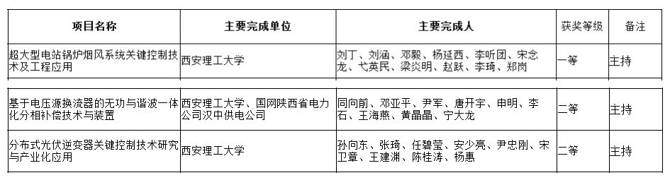 公司刘丁教授主持的《超大型电站锅炉烟风系统关键控制技术及工程应用》获得一等奖,同向前教授主持的《基于电压源换流器的无功与谐波一体化分相补偿技术与装置》和孙向东教授主持的《分布式光伏逆变器关键控制技术研究与产业化应用》获得二等奖。