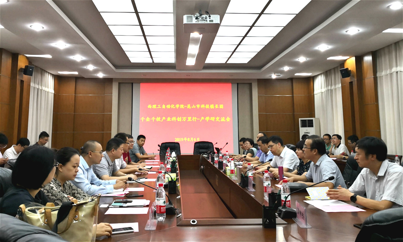 8月6日上午,公司与昆山市科技镇长团一行20人在教四楼101会议室召开产学研合作交流会。昆山市副市长肖立中、公共信用信息中心副主任汪宏韬、花桥经济发展局副局长刘雁桥、高新区科技局副局长吴凤兵,威廉希尔williamhill经理刘涵、副经理封先锋、电气系主任伍文俊、电气系支部书记宋卫章以及相关老师参加了交流会。交流会由封先锋主持。