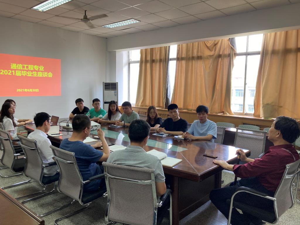 2021年6月30日下午4时,威廉希尔williamhill通信工程系在教5-709召开2021届毕业生座谈会活动。座谈会针对通信工程专业17级本科毕业生对专业培养过程、日常管理及就业服务等环节进行座谈,收集员工的反馈意见,用于改进日后的教学工作。通信工程专业2021届9名毕业生代表、专业负责人柯熙政、通信工程系班子成员、党支部支委以及毕业生班级导师参加了座谈会。会议由支部书记兼副系主任吴鹏飞老师主持。