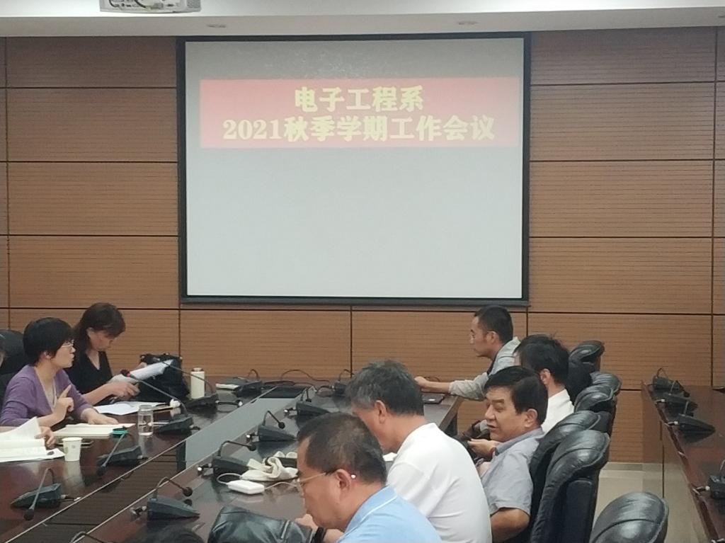 2021年9月3日上午9:00,电子工程系在学科2号楼二楼会议室召开了2021秋季学期工作会议暨师德师风建设集体学习会议,参会人员包括系党政领导班子、学科带头人及全体教师。一方面,系领导就新学期安排、一流专业建设和专业认证中期检查指标分析、课程小组工作规划、科研团队安排、公司产品方案讨论、学科工作安排等进行了动员和部署;另一方面,系党支部组织全体党员、非党员教师集中学习了《新时代师德规范》等文件,并勉励全体教师不忘初心,为社会主义建设培育德才兼备的青年人才。本次会议的顺利召开为电子工程系在新学期的工作和发展指明了方向、奠定了基础。