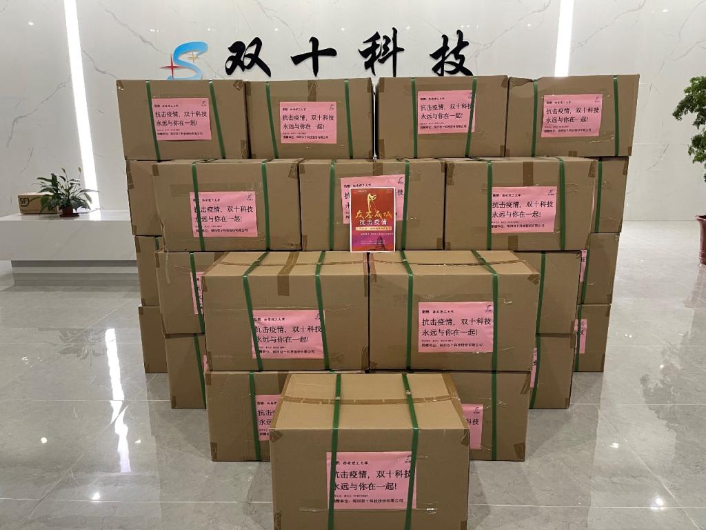 近期西安的疫情牵动着广大员工的心。12月31日上午,公司员工蒙庆文代表广州庆源电子有限公司、员工王仕初代表深圳双十科技股份有限公司联系电子工程系余宁梅教授,驰援千余公里分别向公司捐赠两箱共80个红外测温枪和3万只N95口罩,为公司防疫工作提供支援。目前两批防疫物资已经通过中铁快运寄出。