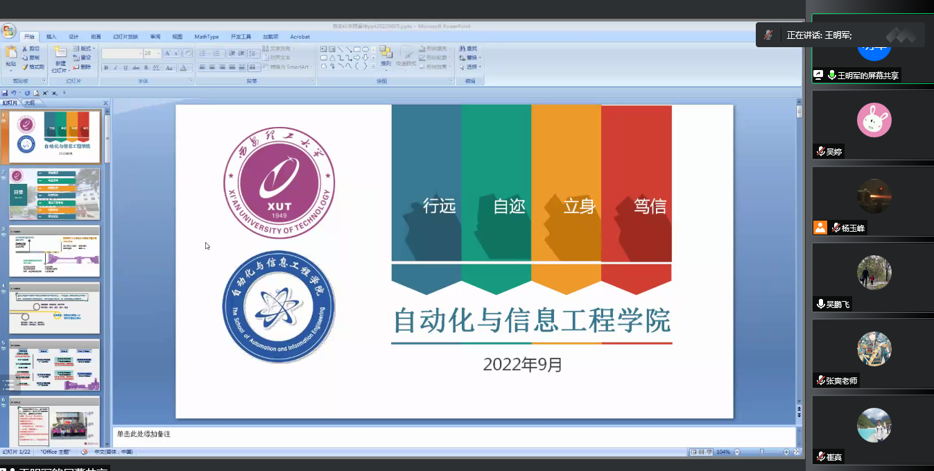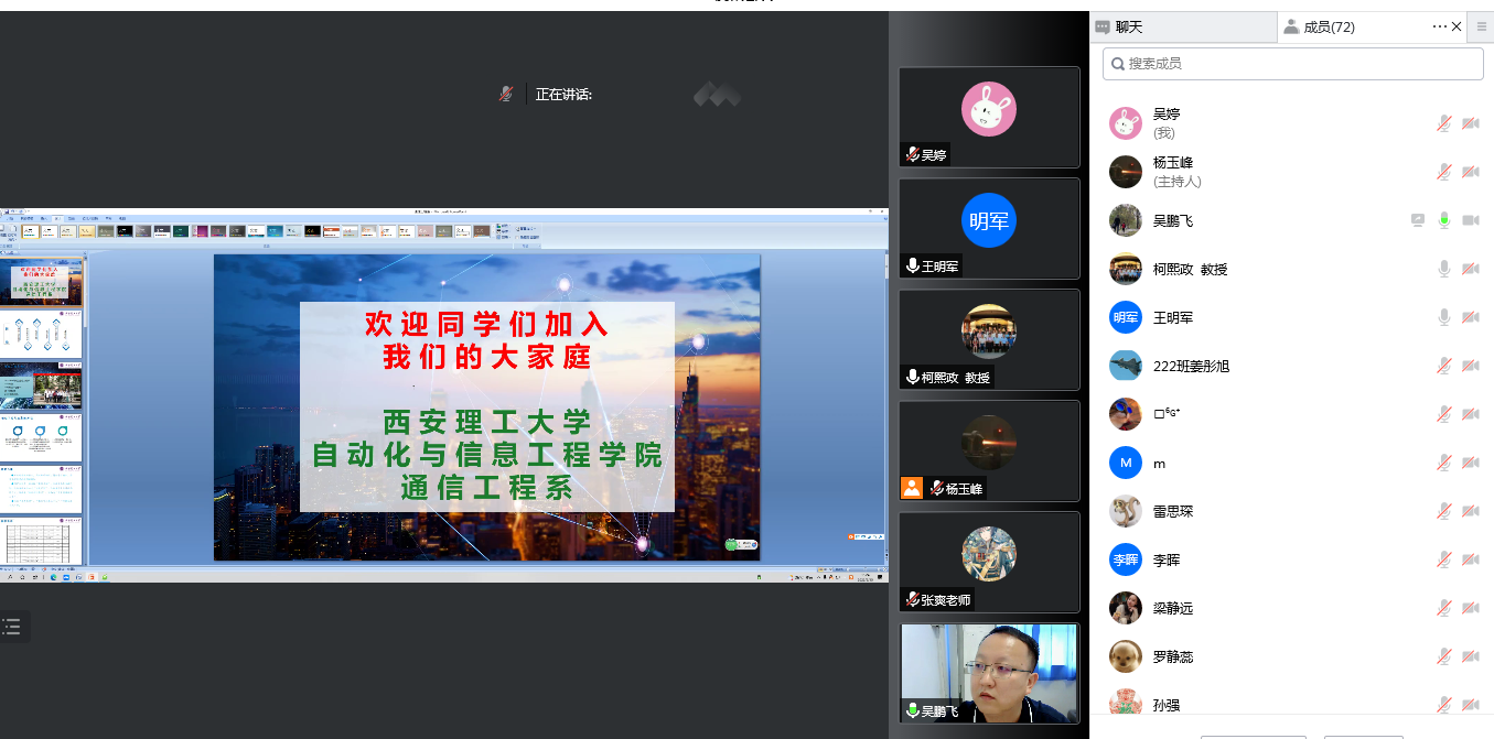 吴鹏飞主任介绍了通信工程系的发展历程、团队力量以及教学、科研成果,期望同学们能在本科阶段认真学习,不负使命,做国家创新发展的新生力量。