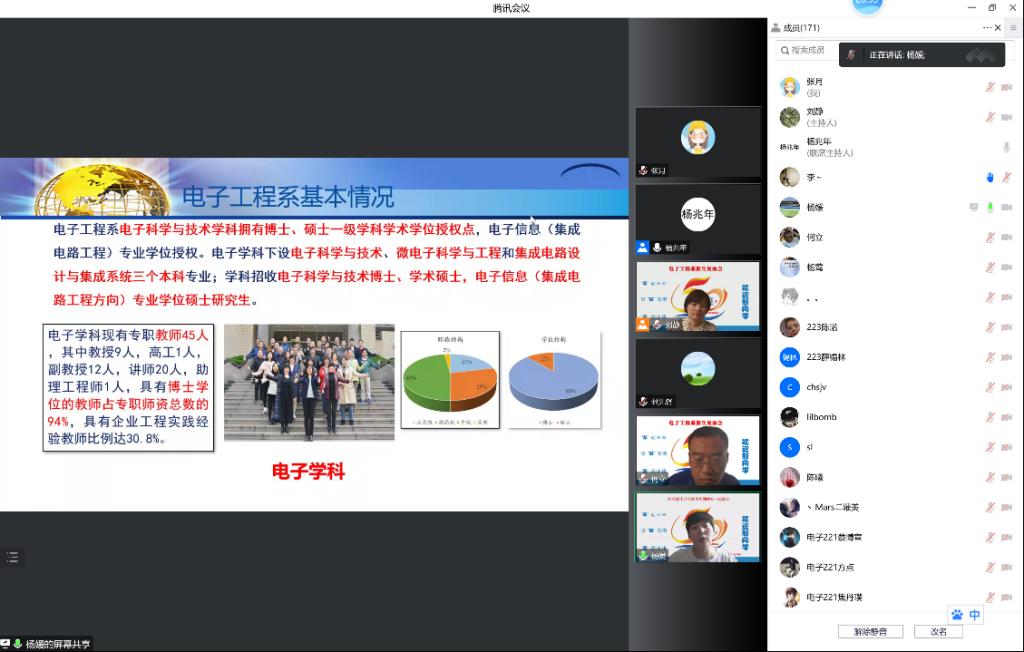 2022年9月16日下午,电子工程系在线举行了2022级新生见面会暨专业教育会。电子科学与技术学科带头人杨媛,威廉希尔williamhill副经理封先锋,电子工程系领导班子、电子系教工党支部班子、学科全体教授、2022级本科班级导师参加了此次会议,会议由电子工程系主任刘静主持。