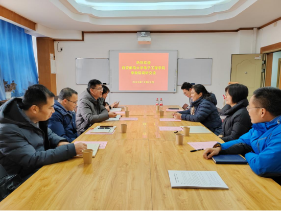 2023年12月22日下午,西安邮电大学电子工程公司教学副经理邓军勇一行4人来访威廉希尔williamhill调研交流专业建设和本科人才培养工作,威廉希尔williamhill教学副经理季瑞瑞、电子系系主任刘静、信控系教学主任姚俊良、电子系教学主任何立参加了交流会。会议由季瑞瑞主持。