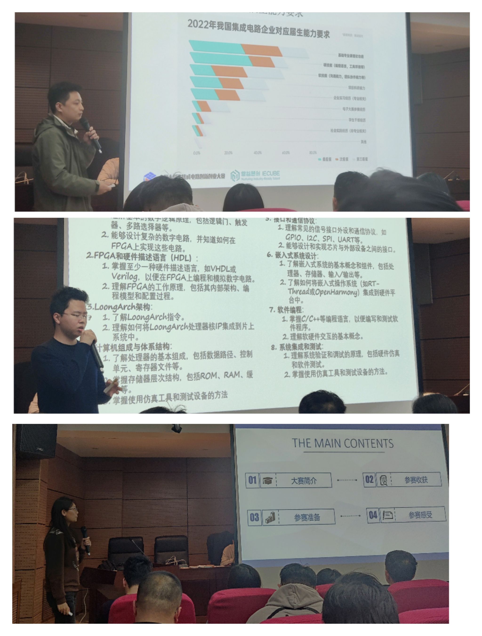 在赛事经验分享环节,往届获奖团队成员、自动与信息工程公司电子科学及技术专业姚鑫蕊同学分享了她集创赛参赛经验和感悟,鼓励广大同学们认真准备积极参赛,不断提升自己的创新能力和实践能力。