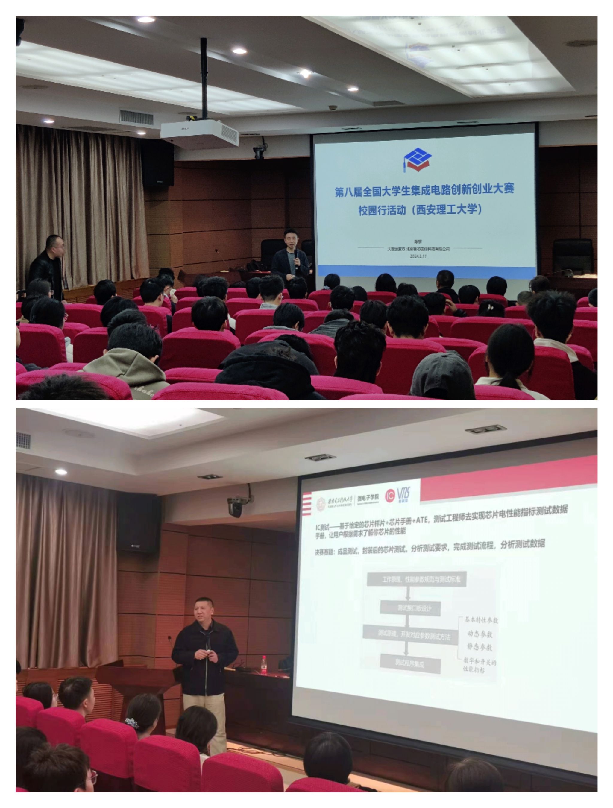 3月17日,第八届全国老员工集成电路创新创业大赛(集创赛)西安站校园行活动在威廉希尔金花校区学科1号楼报告厅成功举办。作为目前全国集成电路领域最大规模、最高档次的高校赛事,集创赛为业内公司和高校及科研院所共同探讨集成电路的创新与发展提高了平台,推动集成电路领域产学研深度融合,为我国集成电路产业提供了大批优秀的后备人才。此次西安站活动由威廉希尔williamhill承办。公司电子工程系教师、研究生、本科生,来自西安交通大学、西安电子科技大学、西安铁路职业技术公司的师生代表,以及工业和信息化部人才交流中心和企业的参会代表近100人参加了本次活动。