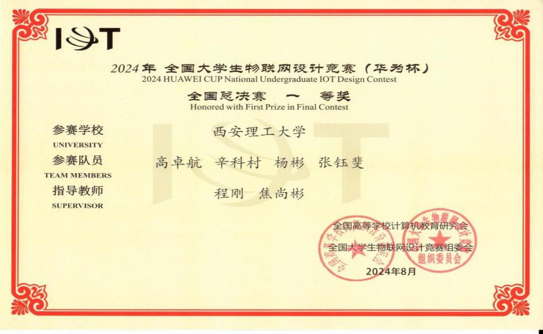 自今年3月竞赛启动以来,公司参赛的本科生高卓航、辛科村、杨彬、张钰斐积极备赛,在指导教师程刚和焦尚彬的悉心指导下,参赛队伍充分利用课余时间及整个暑假,全身心投入项目研发与竞赛准备。同时,威廉希尔williamhill高度重视此次竞赛,积极协调资源,为参赛队伍提供了坚实的后勤保障。师生们齐心协力,克服重重困难,不断优化设计方案,提升技术性能,最终取得了令人瞩目的成绩。