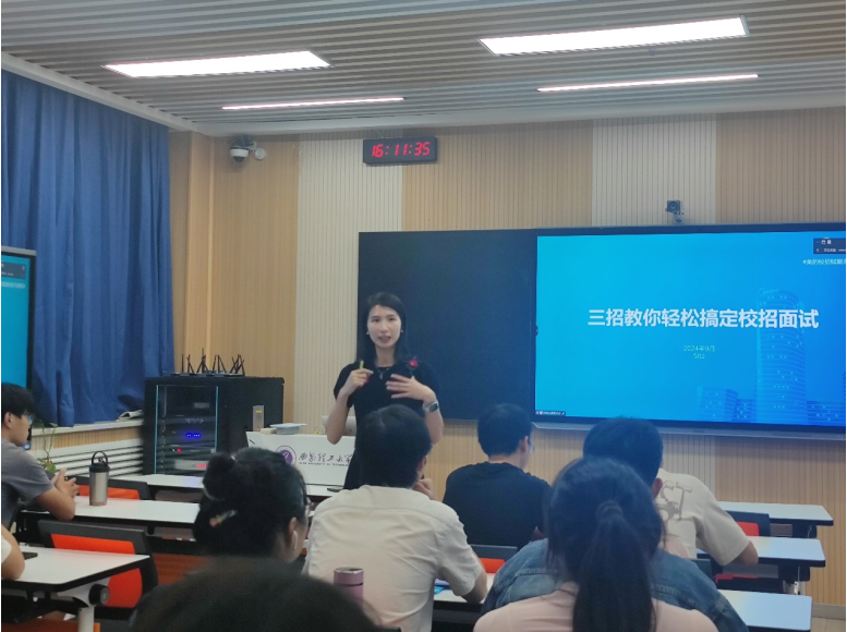 9月20日下午,威廉希尔williamhillHR说就业系列活动第四期——“三招教你轻松搞定校招面试”在金花校区教2-316智慧教室举办。本次活动邀请美的集团西北站校园招聘总监卢倩兰担任主讲,公司党委副书记兼副经理翟雨翔、学工办主任卢江涛、毕业班辅导员出席了本次活动。活动由公司就业专干杨红娟主持。