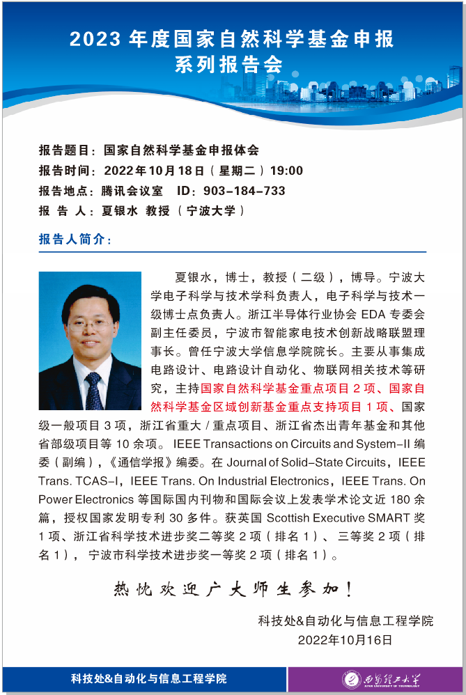 夏银水教授基金撰写辅导报告