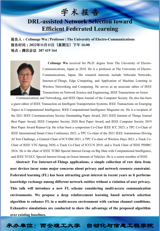 研究生学术年会系列报告-——DRL-assisted Network Selection toward efficient Federated Learning